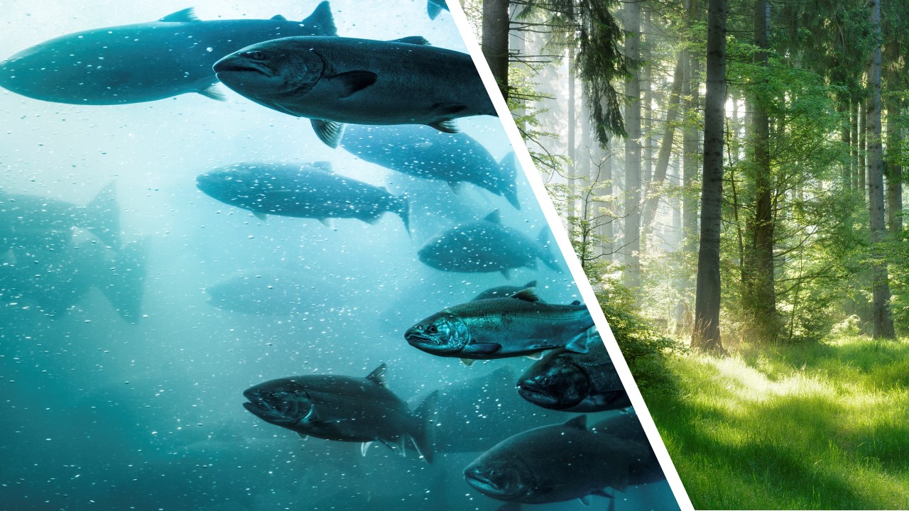 I dag importerer vi soya til laksefôr fra land som Brasil og USA. Befolkningsvekst og klimaendringer gjør at landbruksområder over hele verden er under press. Hva om laksen i stedet kan spise lokalmat, som treflis? Norske skoger kan romme store verdier.