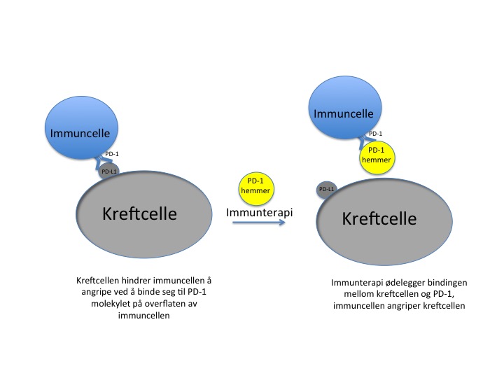 – Det er en måte for kroppen vår å beskytte seg på. For høy aktivitet hos immunforsvaret kan være farlig, fordi det da kan begynne å angripe kroppens eget vev. Men hos en pasient med kreft, ønsker vi å fjerne bremsen på immuncellene som dreper kreftcellene. Det er nettopp det denne medisinen gjør.