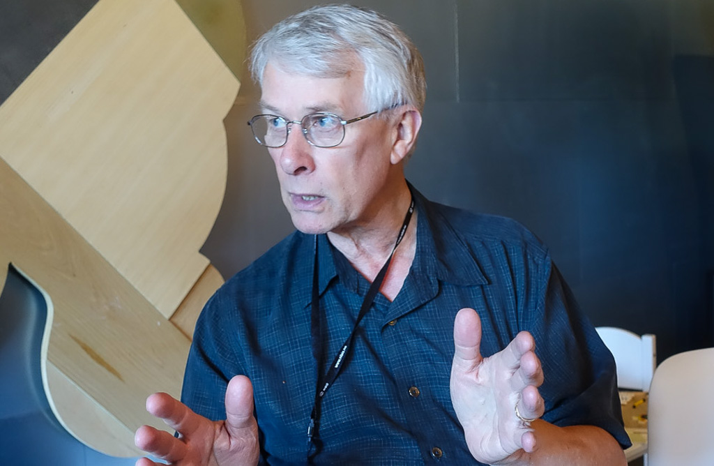 Richard Roberts lener seg engasjert over bordet, hvor resten av lunsjen hans blir stående urørt under flommen av ord: