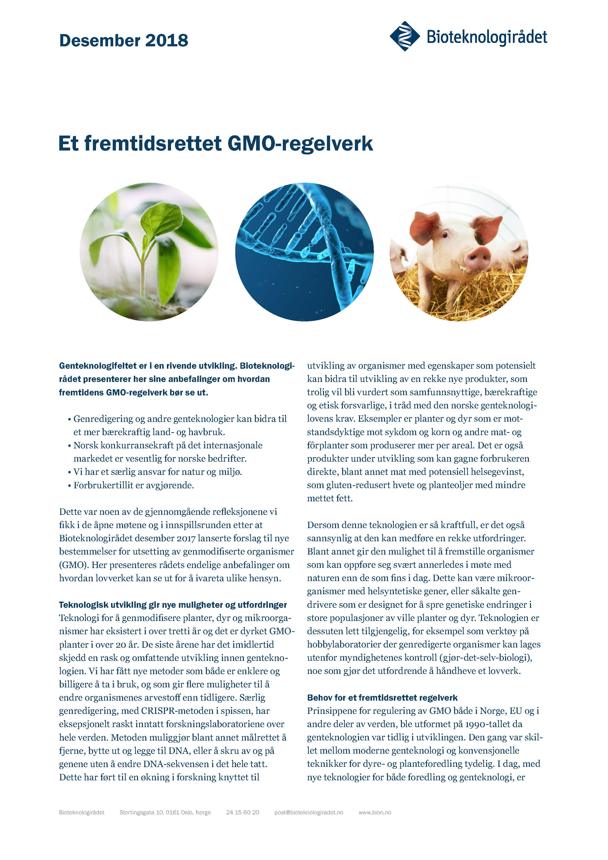Uttalelsen ble overlevert til myndighetene ved klima- og miljøminister Ola Elvestuen 4. desember 2018. Da var det gått ganske nøyaktig ett år siden Bioteknologirådet lanserte sin foreløpige uttalelse på hvordan fremtidens GMO-regelverk kunne se ut. Siden da har alle interesserte hatt anledning til å si sin mening. Rådet har avholdt syv åpne debattmøter og har i tillegg mottatt 50 innspill fra organisasjoner, forskere og privatpersoner.